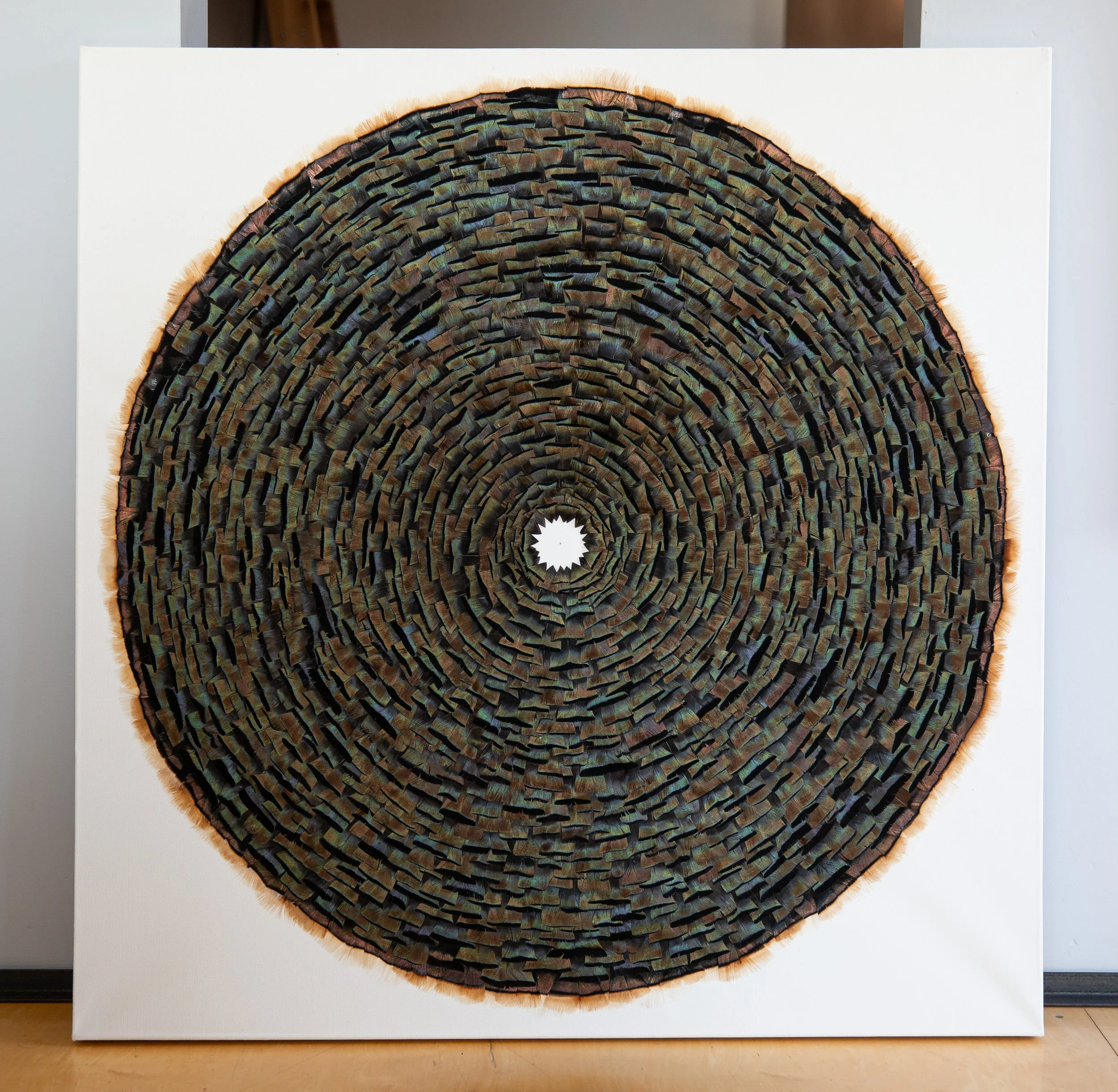3’ x 3’, turkey feathers on canvas